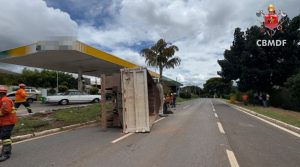 Caminhão tomba e deixa motorista preso às ferragens no Lago Sul