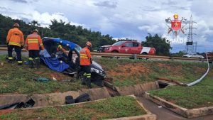A área foi isolada para garantir a segurança do resgate, e parte da via precisou ser interditada. Dois ocupantes do veículo receberam atendimento no local e, após avaliação médica, foram encaminhados a uma unidade hospitalar.