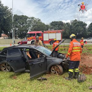 O Corpo de Bombeiros Militar do Distrito Federal (CBMDF) foi acionado e enviou três viaturas para atender a ocorrência. No local, os socorristas encontraram um VW Nivus, de cor chumbo, que havia capotado e parado novamente em posição normal na área verde ao lado da via.