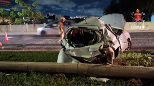 Carro é arremessado contra poste após batida e mulher fica gravemente ferida no DF [...]