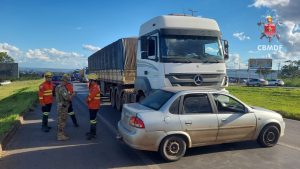 Um acidente entre um carro e uma carreta mobilizou o Corpo de Bombeiros Militar do Distrito Federal (CBMDF) na tarde desta terça-feira (14), na BR-040, na altura de Santa Maria, sentido Valparaíso (GO).
