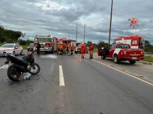 De acordo com o Corpo de Bombeiros Militar do Distrito Federal (CBMDF), o chamado foi registrado às 17h36 e três viaturas de socorro foram mobilizadas para a ocorrência. Ao chegarem à pista, as equipes encontraram as duas motos caídas e as vítimas já no solo, o que exigiu a rápida sinalização da via e o isolamento da área para evitar novos acidentes. Em seguida, os militares iniciaram o atendimento seguindo o protocolo para vítimas de trauma.