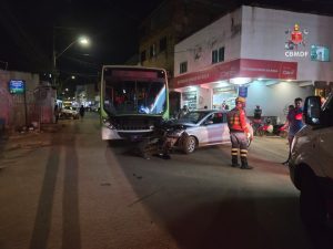O Corpo de Bombeiros Militar do Distrito Federal (CBMDF) foi acionado às 19h21 e encontrou no local uma colisão entre um ônibus de transporte urbano e um Fiat Argo prata. Apenas o motorista do carro precisou de atendimento médico.