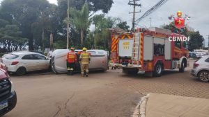 Colisão entre veículos seguida de tombamento interdita via em Taguatinga