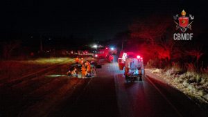 O Corpo de Bombeiros Militar do Distrito Federal (CBMDF) foi acionado às 20h19 e encontrou no local um acidente envolvendo um Chevrolet Corsa preto e uma Honda CG vermelha. Com a gravidade da batida, a rodovia precisou ser totalmente isolada para o trabalho das equipes de resgate.