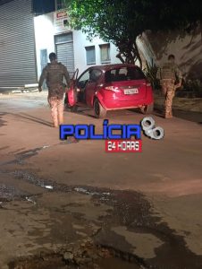 O suspeito estava em um veículo Ford Ka, de cor vermelha, e no momento da abordagem policial encontrava-se acompanhado de um jovem, que afirmou não conhecer o foragido.
