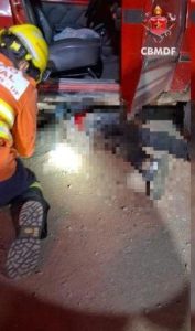 Motociclista é resgatado debaixo de carro após colisão no Lago Oeste