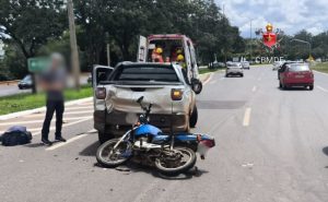 O Corpo de Bombeiros Militar do Distrito Federal foi chamado e enviou duas viaturas de socorro ao local. Quando as equipes chegaram, encontraram o condutor da moto caído no asfalto, com ferimentos considerados moderados.