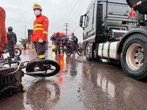A partir das 18h05, equipes do Corpo de Bombeiros Militar do Distrito Federal (CBMDF) foram acionadas para atender a ocorrência. Quando chegaram ao local, encontraram uma moto Honda CG 160, de cor vermelha, e uma carreta preta envolvidos no acidente.