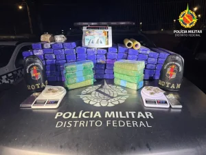 Simultaneamente, o segundo homem, que permanecia em via pública acompanhado de uma mulher, foi abordado. Durante a busca veicular, os policiais localizaram aproximadamente 20 tabletes de maconha no porta-malas do automóvel.