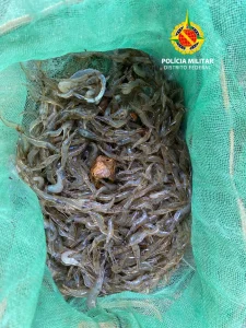 A equipe (prefixo Lacustre 04) avistou os indivíduos na margem do lago, embaixo da Ponte Costa e Silva, portando redes de malhas reduzidas, petrecho de uso proibido para a região conforme a legislação vigente. Durante a abordagem, foram localizados aproximadamente 8kg de peixes da espécie tucunaré e cerca de 500g de camarão-canela. Os suspeitos admitiram a utilização das redes para a captura dos crustáceos em local onde a pesca é vedada por decreto ambiental.