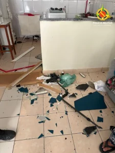 Ao chegarem ao local, os policiais militares depararam-se com um cenário de desordem: diversos objetos da residência estavam danificados e o autor proferia xingamentos e ofensas contra a vítima. Em depoimento inicial, a senhora informou que o filho havia quebrado pertences do imóvel e que já possuía uma medida protetiva vigente em seu favor, evidenciando o descumprimento de ordem judicial