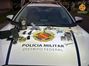 No interior da casa, foram apreendidas duas armas de fogo — uma pistola calibre .380 com numeração suprimida e uma arma calibre .22 — além de dois carregadores, 26 munições calibre .22 e quatro munições calibre .380. Também foram encontradas três balanças de precisão, um tablete de maconha e três porções de cocaína.