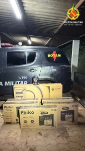 Durante a abordagem técnica, os policiais localizaram os aparelhos que haviam sido subtraídos anteriormente. No total, foram recuperados seis televisores que estavam em posse dos suspeitos: