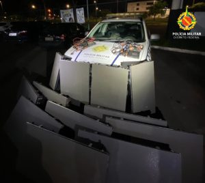Ao todo, foram recuperados 12 painéis de LED e dois computadores, além da apreensão do veículo utilizado na ação. O prejuízo evitado é estimado em aproximadamente R$ 60 mil. A ocorrência foi registrada como furto e segue sob apuração