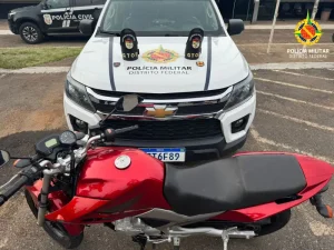 A Polícia Militar do Distrito Federal recuperou uma motocicleta roubada neste sábado (21), por volta das 15h, nas proximidades do estacionamento do Shopping Iguatemi, no Lago Norte. A ação foi realizada por policiais militares do 13º, 20º e 23º Batalhões da PMDF.