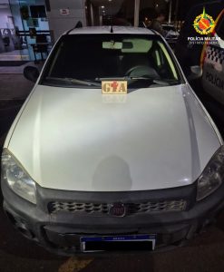 No local, o automóvel não estava estacionado na via pública, mas foi visualizado no interior do imóvel um veículo Fiat Strada branco ostentando placas aparentemente regulares. Diante da fundada suspeita, a moradora autorizou a entrada da equipe para averiguação.