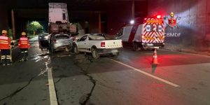 De acordo com o Corpo de Bombeiros Militar do Distrito Federal (CBMDF), a corporação foi acionada às 23h31 e mobilizou quatro viaturas de socorro para atender a ocorrência. No local, as equipes encontraram um cenário de colisão entre um caminhão e dois veículos de passeio. O policial militar, que não estava em nenhum dos automóveis envolvidos, havia parado para prestar ajuda às primeiras vítimas quando acabou sendo atingido.