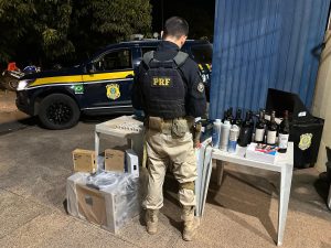 No porta-malas, também foram encontradas diversas mercadorias de origem estrangeira, como vinhos, perfumes, eletrônicos e ferramentas, sem a devida regularização aduaneira.