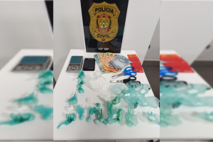 A polícia apreendeu, em posse do trio, diversas porções de cocaína, balanças de precisão, celulares, utensílios com resquícios de drogas, material para fracionamento e R$ 278 em dinheiro. Dois carros também foram apreendidos.