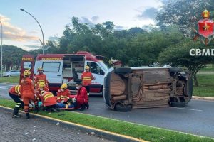Um carro tombou, no início da manhã deste domingo (26/4), em frente ao Terraço Shopping, na região do Cruzeiro. De acordo com o Corpo de Bombeiros Militar do Distrito Federal (CBMDF), o acidente ocorreu por volta das 6h16. Ao chegarem ao local, os socorristas encontraram o motorista caído na via
